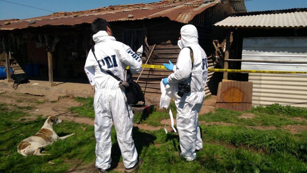 De inmediato Carabineros llegaron al lugar encontrando el cuerpo de la mujer sin vida, la cual fue identificada como R.E.B.N. de 35 años, en tanto cerca de su cuerpo se encontraba un hombre con un cuchillo enterrado en el abdomen, este fue trasladado grave hasta el Hospital San Juan de Dios, donde fue llevado custodiado por Carabineros hasta el Servicio de Urgencia, Carabineros le dio cuenta al Fiscal de Turno, quien dispuso la presencia de la Brigada de Homicidios, quienes llegaron cerca de las 13 horas iniciando de inmediato el trabajo en el sitio del suceso.